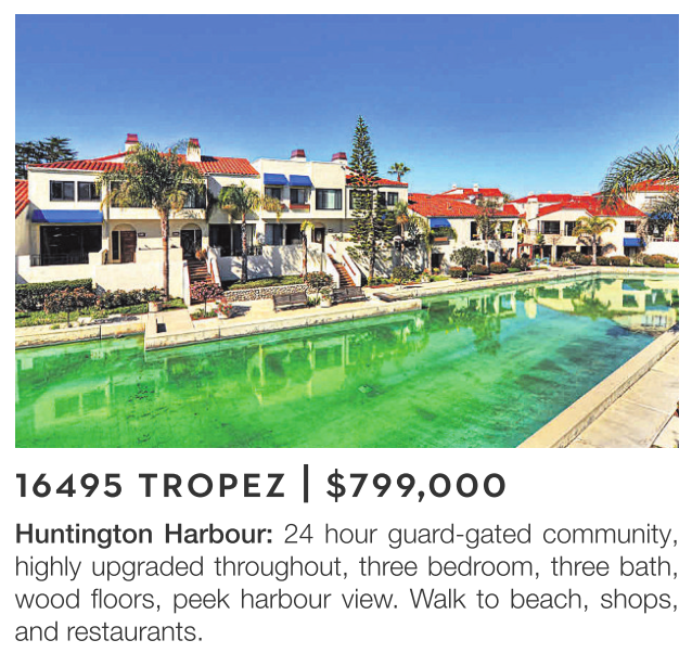 Huntington Harbour: 24 hour guard-gated community, highly upgraded throughout, three bedroom, three bath, wood floors, peek harbour view. Walk to beach, shops, and restaurants.