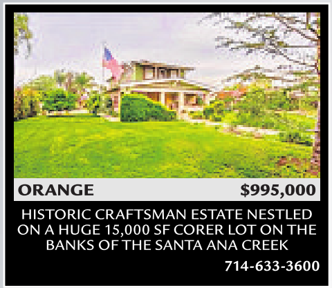 HISTORIC CRAFTSMAN ESTATE NESTLED ON AHUGE 15,000 SF CORER LOT ON THE BANKS OFTHE SANTA ANA CREEK 714-633-3600