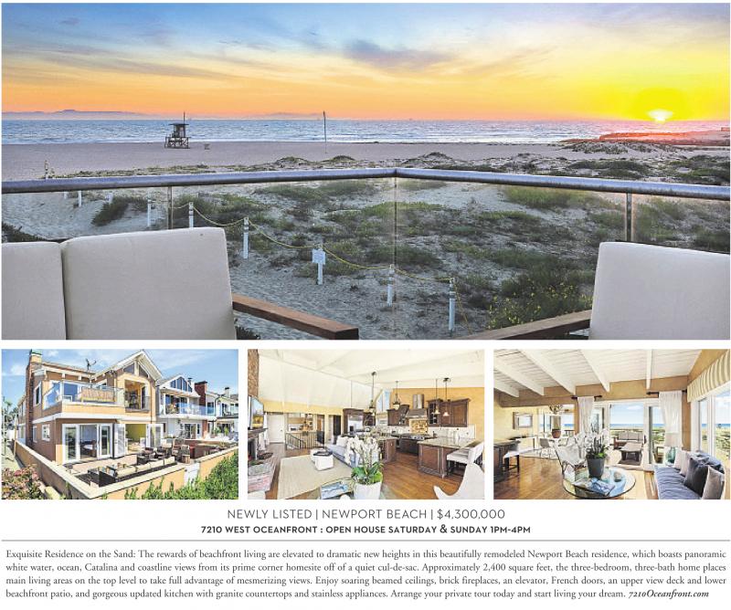 NEWLY LISTED | NEWPORT BEACH | $4,300,000 7210 WEST OCEANFRONT : OPEN HOUSE SATURDAY & SUNDAY 1PM-4PM Exquisite Residence on the Sand: The rewards of beachfront living are elevated to dramatic new heights in this beautifully remodeled Newport Beach residence, which boasts panoramic white water, ocean, Catalina and coastline views from its prime corner homesite off of a quiet cul-de-sac. Approximately 2,400 square feet, the three-bedroom, three-bath home places main living areas on the top level to take full advantage of mesmerizing views. Enjoy soaring beamed ceilings, brick fireplaces, an elevator, French doors, an upper view deck and lower beachfront patio, and gorgeous updated kitchen with granite countertops and stainless appliances. Arrange your private tour today and start living your dream. 7210Oceanfront.com