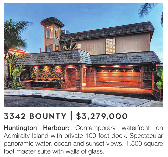 Huntington Harbour: Contemporary waterfront on Admiralty Island with private 100-foot dock. Spectacular panoramic water, ocean and sunset views. 1,500 square foot master suite with walls of glass.