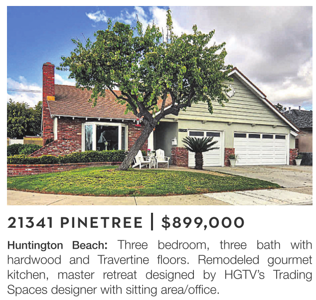 Huntington Beach: Three bedroom, three bath with hardwood and Travertine floors. Remodeled gourmet kitchen, master retreat designed by HGTV’s Trading Spaces designer with sitting area/office.
