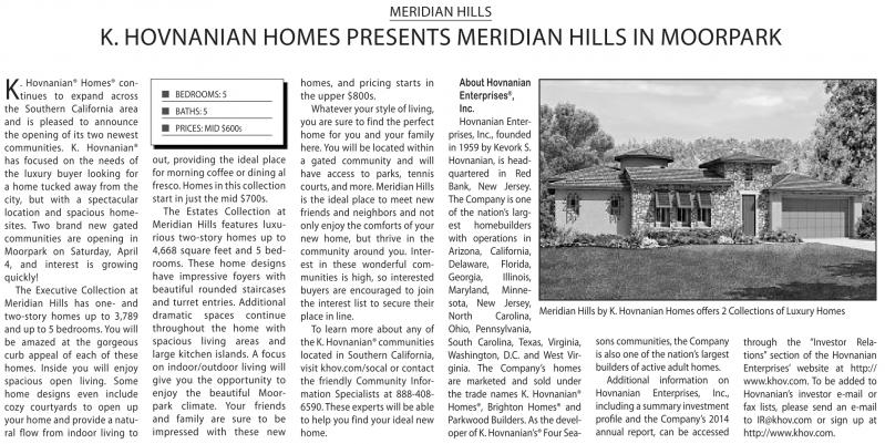 K. HovnAnIAn HoMEs PrEsEnTs MErIdIAn HIlls In MoorPArK