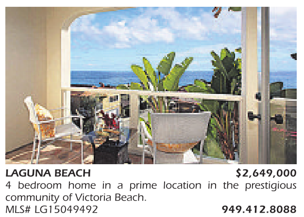 LAGUNA BEACH $2,649,000 4 bedroom home in a prime location in the prestigious community of Victoria Beach. MLS# LG15049492 949.412.8088