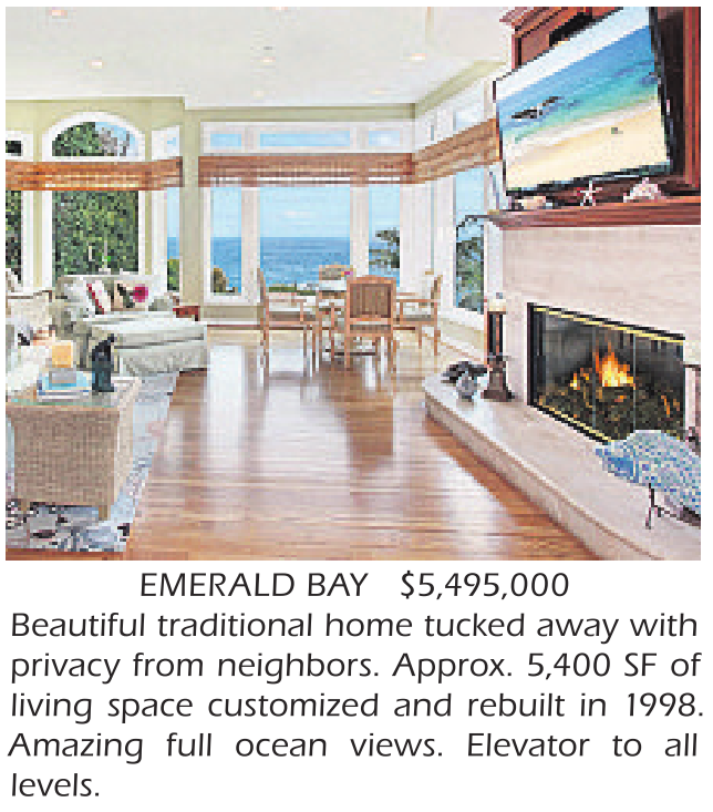 EMERALD BAY $5,495,000 Beautiful traditional home tucked away with privacy from neighbors. Approx. 5,400 SF of living space customized and rebuilt in 1998.