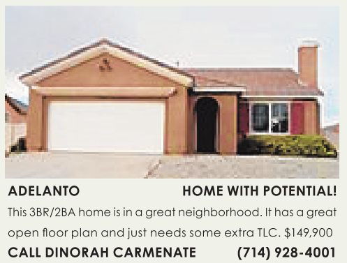 open floor plan and just needs some extra TLC. $149,900 CALL DINORAH CARMENATE (714) 928-4001