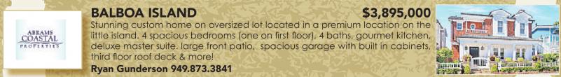 Stunning custom home on oversized lot located in a premium location on the little island. 4 spacious bedrooms (one on first floor), 4 baths, gourmet kitchen, deluxe master suite. large front patio, spacious garage with built in cabinets, third floor roof deck & more! Ryan Gunderson 949.873.3841
