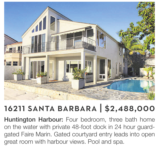 Huntington Harbour: Four bedroom, three bath home on the water with private 48-foot dock in 24 hour guardgated Faire Marin. Gated courtyard entry leads into open great room with harbour views. Pool and spa.