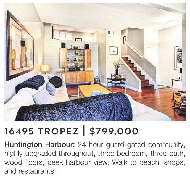 Huntington Harbour: 24 hour guard-gated community, highly upgraded throughout, three bedroom, three bath, wood floors, peek harbour view. Walk to beach, shops, and restaurants.
