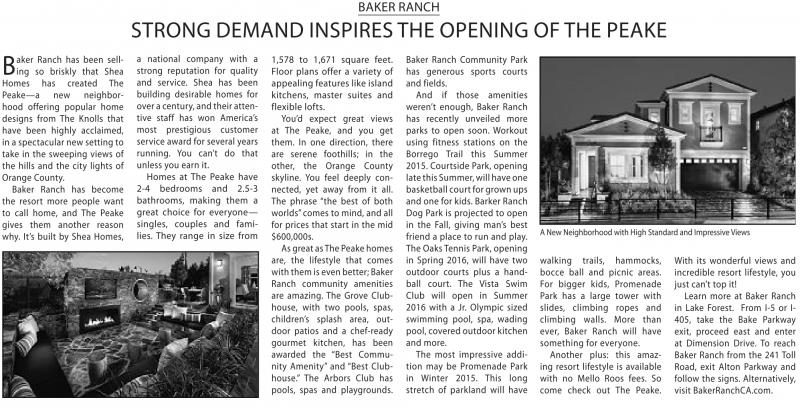 Baker Ranch has become the resort more people want to call home, and The Peake gives them another reason why. It’s built by Shea Homes,