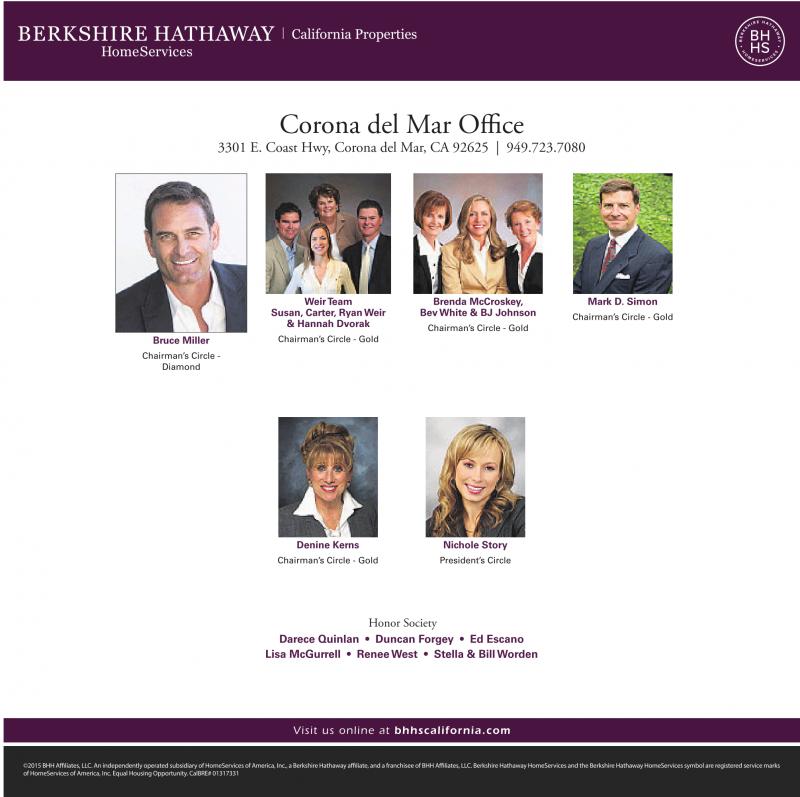©2015 BHH Affiliates,LLC.Anindependently operated subsidiaryofHomeServices of America, Inc.,aBerkshireHathawayaffiliate, andafranchisee of BHH Affiliates,LLC.BerkshireHathawayHomeServicesand the BerkshireHathawayHomeServicessymbolare registered servicemarks of HomeServices of America, Inc. EqualHousing Opportunity. CalBRE# 01317331
