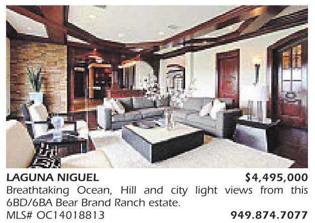 LAGUNA NIGUEL $4,495,000 Breathtaking Ocean, Hill and city light views from this 6BD/6BA Bear Brand Ranch estate. MLS# OC14018813 949.874.7077