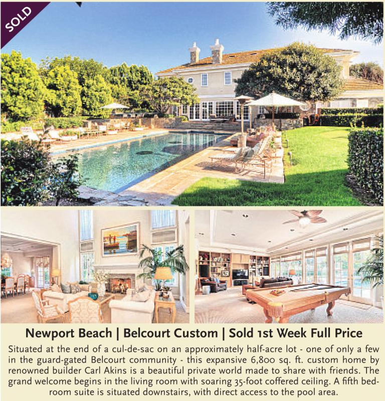Newport Beach | Belcourt Custom | Sold 1st Week Full Price Situated at the end of a cul-de-sac on an approximately half-acre lot - one of only a few in the guard-gated Belcourt community - this expansive 6,800 sq. ft. custom home by renowned builder Carl Akins is a beautiful private world made to share with friends. The room suite is situated downstairs, with direct access to the pool area.