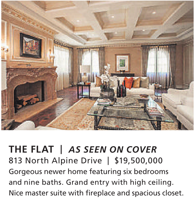 THE FLAT | AS SEEN ON COVER 813 North Alpine Drive | $19,500,000 Gorgeous newer home featuring six bedrooms and nine baths. Grand entry with high ceiling. Nice master suite with fireplace and spacious closet.