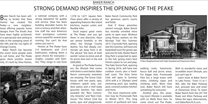 Baker Ranch has become the resort more people want to call home, and The Peake gives them another reason why. It’s built by Shea Homes,
