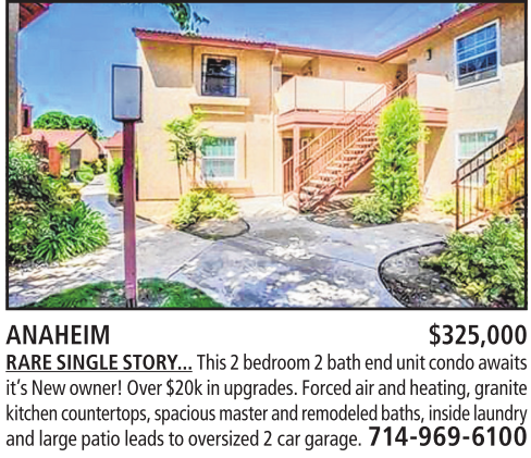 it’s Newowner!Over$20kinupgrades. Forced airand heating, granite kitchen countertops,spacious master and remodeled baths, insidelaundry andlarge patioleads to oversized2car garage. 714-969-6100