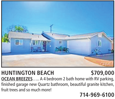 HUNTINGTON BEACH $709,000 OCEAN BREEZES…..A4bedroom2bath home with RV parking,