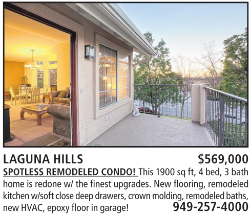 LAGUNA HILLS $569,000 SPOTLESS REMODELED CONDO! This 1900 sq ft,4bed, 3bath