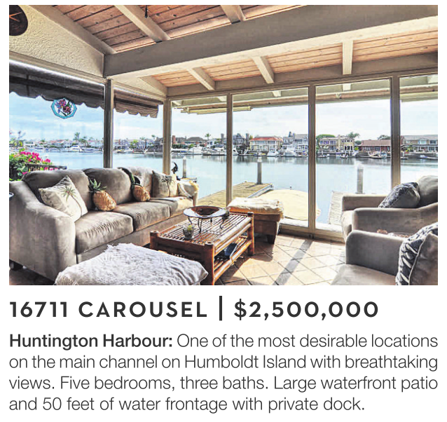 Huntington Harbour: One of the most desirable locations on the main channel on Humboldt Island with breathtaking views. Five bedrooms, three baths. Large waterfront patio and 50 feet of water frontage with private dock.