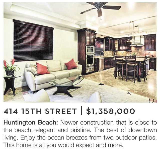 Huntington Beach: Newer construction that is close to the beach, elegant and pristine. The best of downtown living. Enjoy the ocean breezes from two outdoor patios. This home is all you would expect and more.