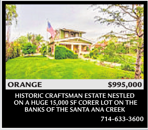 HISTORIC CRAFTSMAN ESTATE NESTLED ON AHUGE 15,000 SFCORER LOT ONTHE BANKS OFTHE SANTA ANA CREEK 714-633-3600