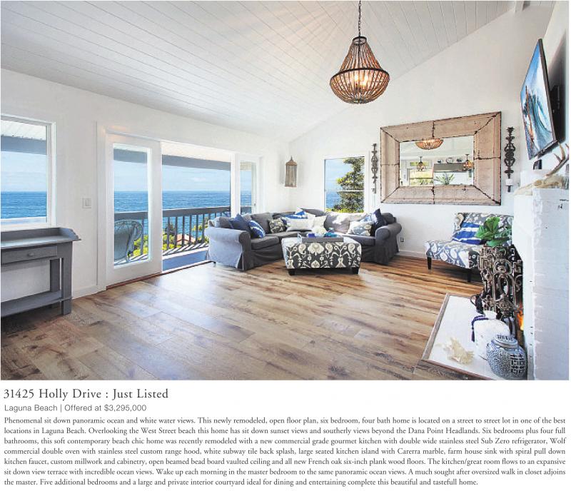 Phenomenal sit down panoramic ocean and white water views. This newly remodeled, open floor plan, six bedroom, four bath home is located on a street to street lot in one of the best locations in Laguna Beach. Overlooking the West Street beach this home has sit down sunset views and southerly views beyond the Dana Point Headlands. Six bedrooms plus four full bathrooms, this soft contemporary beach chic home was recently remodeled with a new commercial grade gourmet kitchen with double wide stainless steel Sub Zero refrigerator, Wolf commercial double oven with stainless steel custom range hood, white subway tile back splash, large seated kitchen island with Carerra marble, farm house sink with spiral pull down kitchen faucet, custom millwork and cabinetry, open beamed bead board vaulted ceiling and all new French oak six-inch plank wood floors. The kitchen/great room flows to an expansive sit down view terrace with incredible ocean views. Wake up each morning in the master bedroom to the same panoramic ocean views. A much sought after oversized walk in closet adjoins the master. Five additional bedrooms and a large and private interior courtyard ideal for dining and entertaining complete this beautiful and tastefull home.