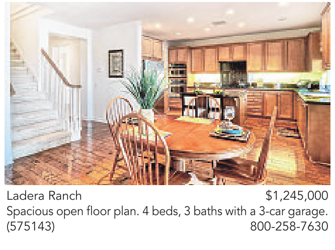 Ladera Ranch $1,245,000 Spacious open floor plan. 4 beds, 3 baths with a 3-car garage. (575143) 800-258-7630