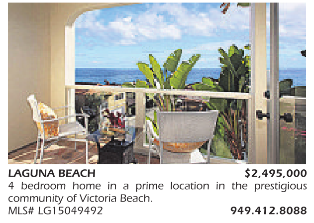 LAGUNA BEACH $2,495,000 4 bedroom home in a prime location in the prestigious community of Victoria Beach. MLS# LG15049492 949.412.8088
