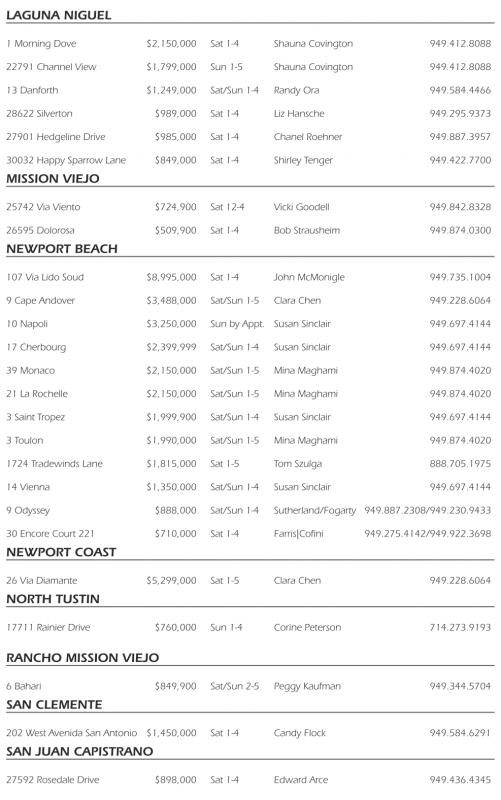17 Cherbourg $2,399,999 Sat/Sun 1-4 Susan Sinclair 949.697.4144
