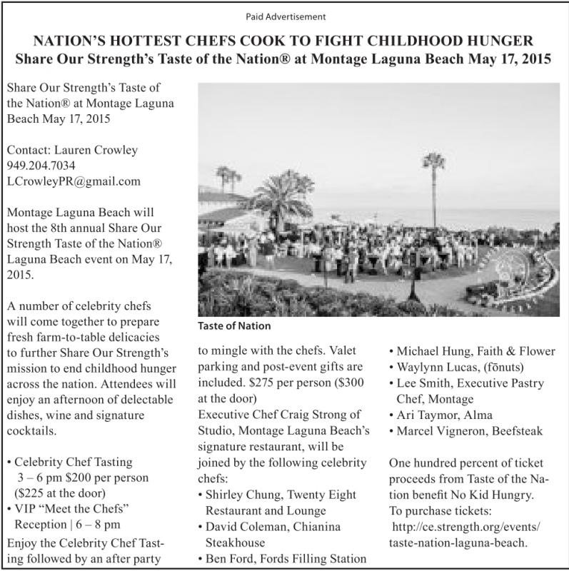 NATION’S HOTTEST CHEFS COOK TO FIGHT CHILDHOOD HUNGER Share Our Strength’s Taste of the Nation® at Montage Laguna Beach May 17, 2015