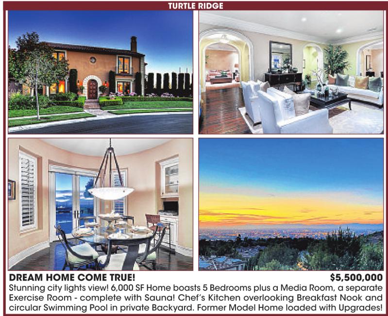 TURTLE RIDGE DREAM HOME COME TRUE! $5,500,000 Stunning city lights view! 6,000 SF Home boasts 5 Bedrooms plus a Media Room, a separate Exercise Room - complete with Sauna! Chef’s Kitchen overlooking Breakfast Nook and circular Swimming Pool in private Backyard. Former Model Home loaded with Upgrades!
