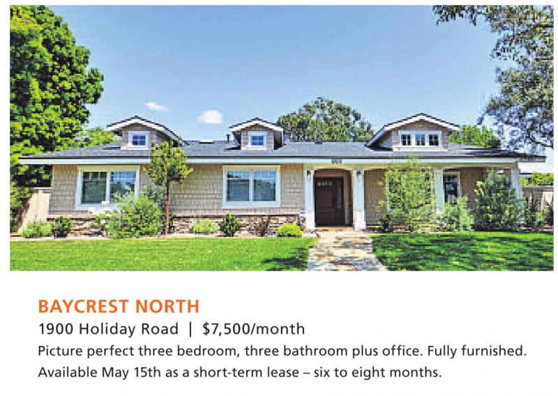 Picture perfect three bedroom, three bathroom plus office. Fully furnished. Available May 15th as a short-term lease – six to eight months.