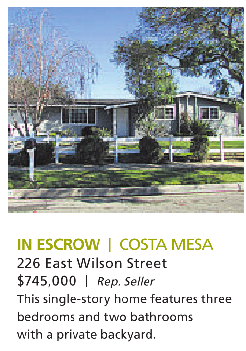 IN ESCROW | COSTA MESA 226 East Wilson Street $745,000 | Rep. Seller