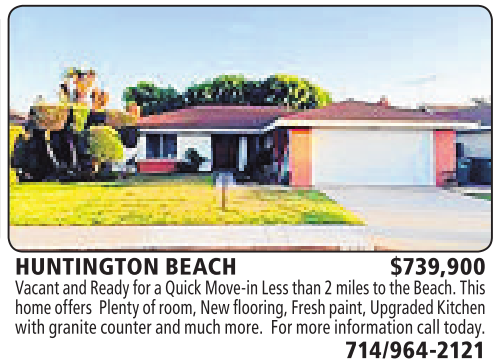 HUNTINGTON BEACH $739,900 Vacant andReady foraQuick Move-inLessthan2miles to theBeach.This home offers Plentyofroom, Newflooring,Freshpaint,UpgradedKitchen with granitecounter and much more. For more informationcalltoday.