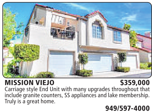 MISSION VIEJO $359,000 Carriage style End Unit with many upgrades throughout that