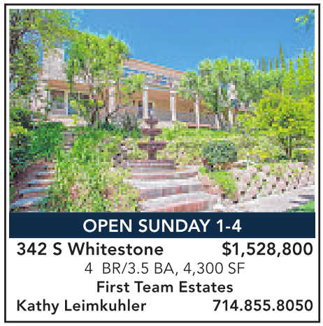 OPEN SUNDAY 1-4 342 S Whitestone $1,528,800 4 BR/3.5 BA, 4,300 SF First Team Estates Kathy Leimkuhler 714.855.8050