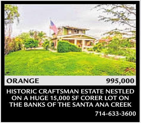 HISTORIC CRAFTSMAN ESTATE NESTLED ON A HUGE 15,000 SF CORER LOT ON THE BANKS OF THE SANTA ANA CREEK 714-633-3600