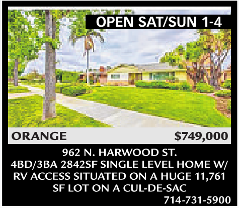 4BD/3BA 2842SF SINGLE LEVEL HOME W/ RV ACCESS SITUATED ON A HUGE 11,761 SF LOT ON A CUL-DE-SAC 714-731-5900