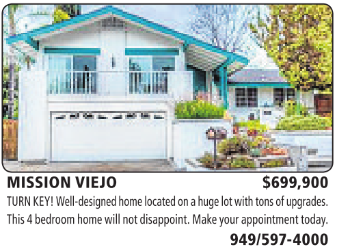 MISSION VIEJO $699,900 TURN KEY! Well-designedhome locatedonahugelot with tons of upgrades. This 4bedroomhome will notdisappoint. Makeyour appointmenttoday.