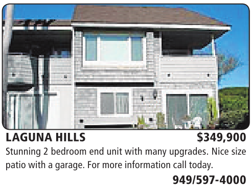 LAGUNA HILLS $349,900 Stunning 2bedroom end unit with many upgrades. Nice size patiowithagarage. For more informationcalltoday.