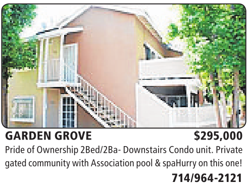 GARDEN GROVE $295,000 PrideofOwnership 2Bed/2Ba-DownstairsCondounit. Private gatedcommunitywithAssociation pool&spaHurry on this one!