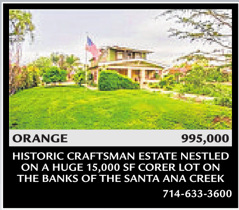 HISTORIC CRAFTSMAN ESTATE NESTLED ON A HUGE 15,000 SF CORER LOT ON THE BANKS OF THE SANTA ANA CREEK 714-633-3600