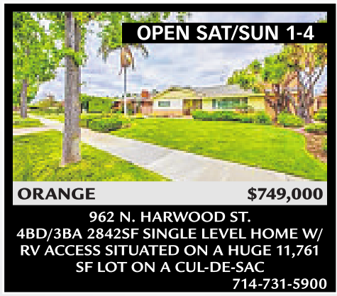 4BD/3BA 2842SF SINGLE LEVEL HOME W/ RV ACCESS SITUATED ON A HUGE 11,761 SF LOT ON A CUL-DE-SAC 714-731-5900