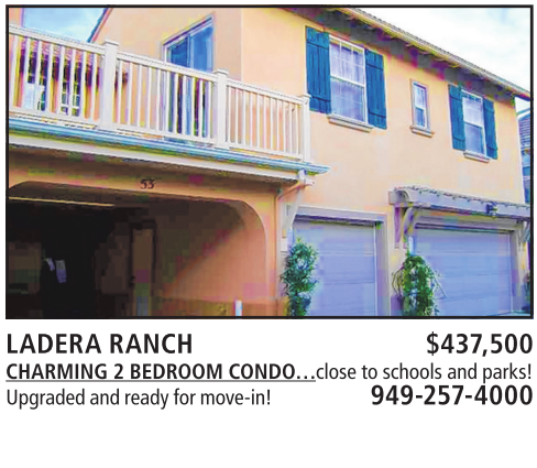 LADERA RANCH $437,500 CHARMING 2BEDROOM CONDO…close to schoolsand parks! Upgraded andready formove-in! 949-257-4000