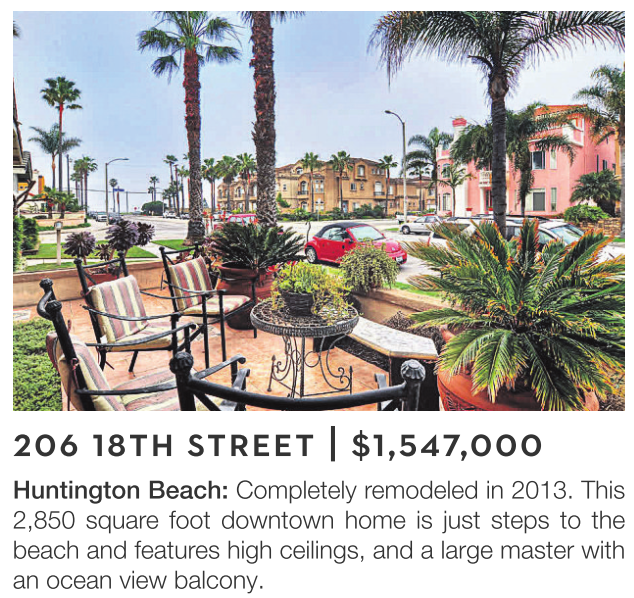 Huntington Beach: Completely remodeled in 2013. This 2,850 square foot downtown home is just steps to the beach and features high ceilings, and a large master with an ocean view balcony.
