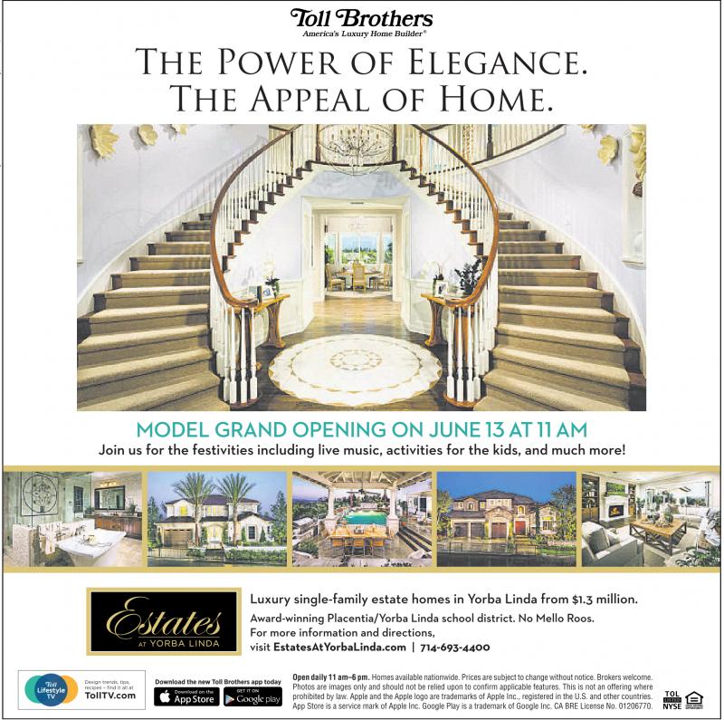 Award-winning Placentia/Yorba Linda school district. No Mello Roos. For more information and directions, visit EstatesAtYorbaLinda.com | 714-693-4400