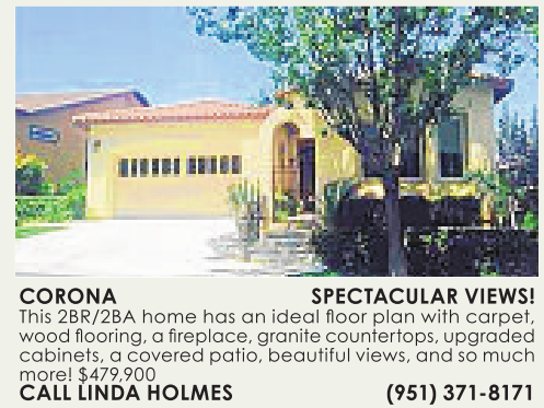 cabinets, acovered patio, beautiful views, and so much more! $479,900 CALL LINDA HOLMES (951) 371-8171