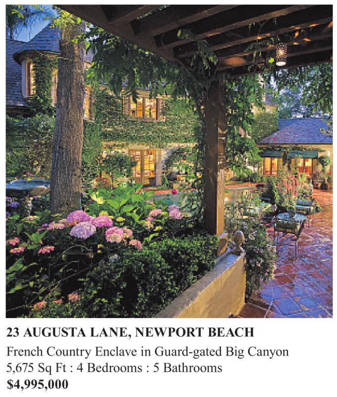 23 AUGUSTA LANE, NEWPORT BEACH French Country Enclave in Guard-gated Big Canyon 5,675 Sq Ft : 4 Bedrooms : 5 Bathrooms $4,995,000