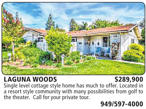 LAGUNA WOODS $289,900 Single level cottage style home has much to offer. Located in aresort style community with many possibilities from golf to thetheater. Callfor your privatetour.