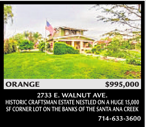 HISTORIC CRAFTSMAN ESTATE NESTLED ON AHUGE 15,000 SF CORNER LOT ONTHE BANKS OFTHE SANTA ANA CREEK 714-633-3600