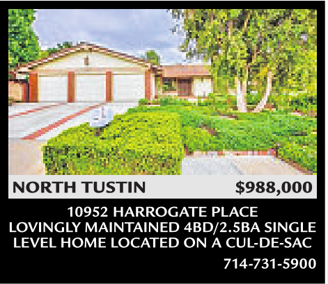 10952 HARROGATE PLACE LOVINGLY MAINTAINED 4BD/2.5BA SINGLE LEVEL HOME LOCATED ON A CUL-DE-SAC 714-731-5900